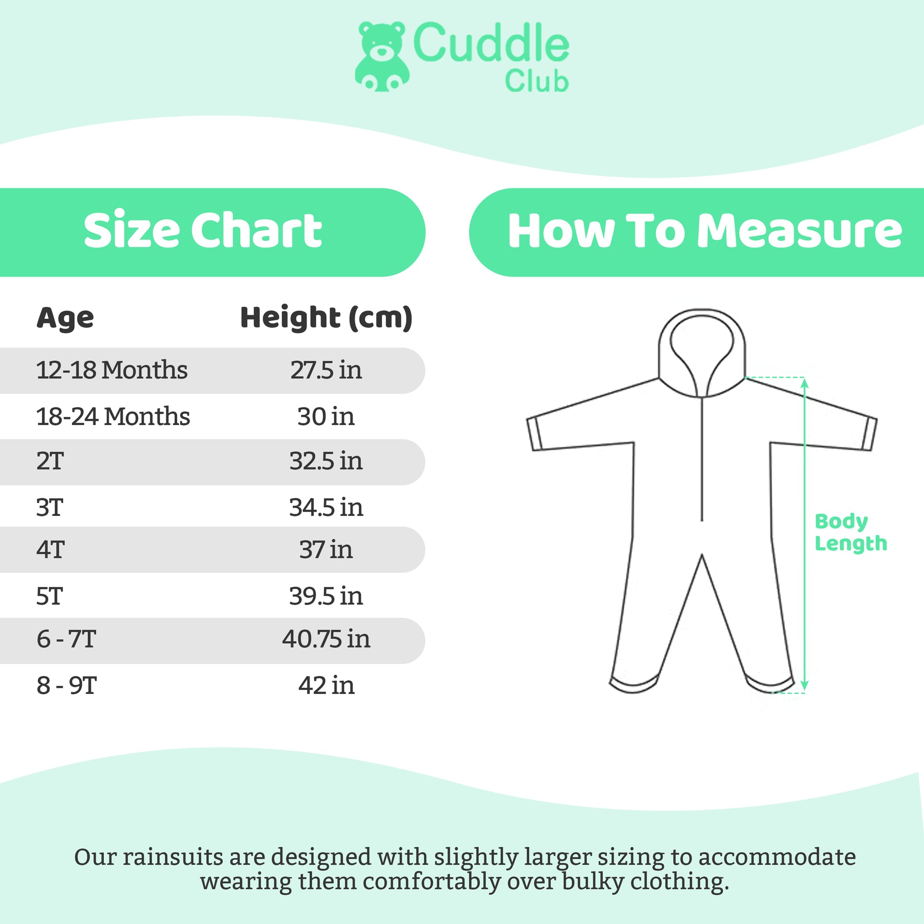 - COMPLETELY WATERPROOF: Cuddle Club Kids Rain/Snow Suits are tough and weather-resistant, giving your child coverall protection.